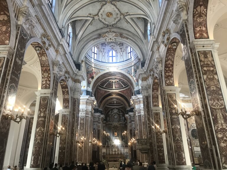 A spectacular Baroque cathedral with a unique history and a facade that towers over the old town.
